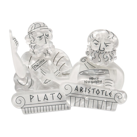 The OG Philosophers brooch is where wit meets wisdom. This limited-run, hand-assembled design captures Plato and Aristotle mid-debate in detailed layered resin. A rather clever conversation starter - if we do say so ourselves - it's wearable art for deep thinkers.