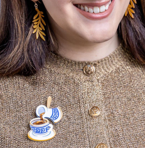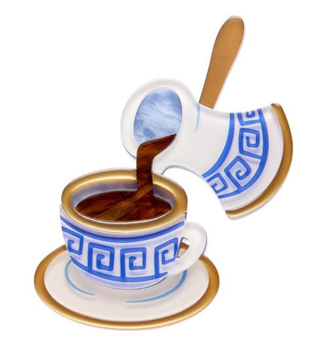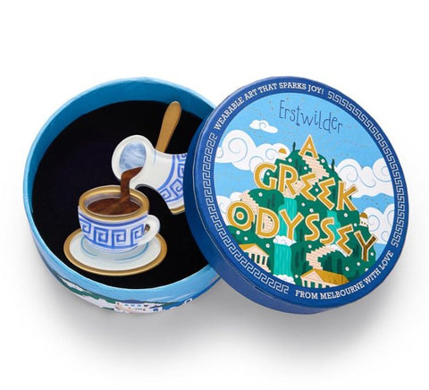 Strong, aromatic, and unapologetically Greek. The Traditional Brew brooch pays homage to coffee culture that’s meant to be savoured, not rushed. Hand-assembled from layered resin and released as a strictly limited run.