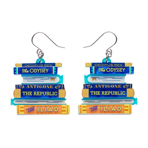 Stacked like treasures of thought, these limited-run Words of the Wise earrings are a tribute to philosophy’s finest minds. Hand-assembled from layered resin and referencing a series of Greek Classics, from The Iliad to Oedipus Rex, they're the perfect pieces of wearable art for lovers of literature, learning, and legacy.