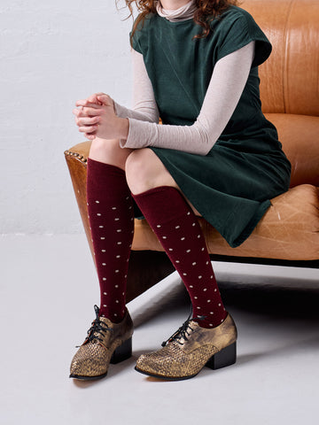 Dotty Long Socks Burgundy
