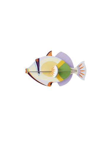 Colourful wall art creatures to build, display and spark the imagination! Let the stories of the oceans swim into your homes with these captivating sea creatures! Watch imaginations set sail as boring walls transform into a whimsical seascape. Printed on recycled cardboard using vegetable ink, these colourful creatures with their bright graphic patterns allow you to add a little beauty to both your home and the world.