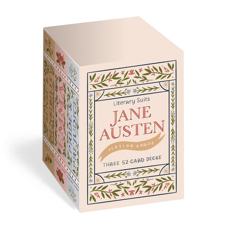 Introducing Literary Suits: Jane Austen, a mini library of playing card decks, with themed decks for Pride and Prejudice, Sense and Sensibility, and Emma, for Austenites who love card games as much as Mr. Hurst.
