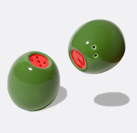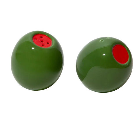 These salt and pepper shakers in the shape of olives will add deliciousness to your meals. Add a bit of flavour to your food and to your table with this set of salt & pepper shakers! These olive-shaped shakers serve Mediterranean charm on demand and are a stylish upgrade for every table.
