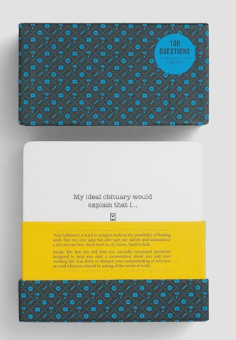 Inside this box you will find 100 carefully composed questions designed to help you start a conversation about you and your working life. Use them to sharpen your understanding of who you are and what you should be asking of the world of work.