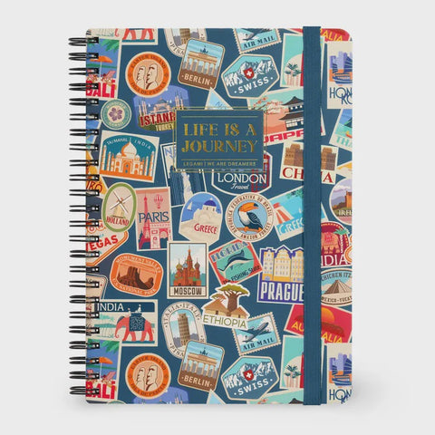 Travel Stickers Spiral Notebook Large Lined