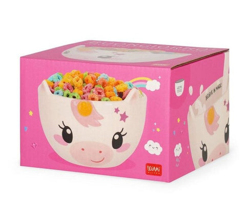 It's not enough to wake up on the right side of the bed, you need the right breakfast bowl too. Try eating the most important meal of the day from Legami's Stoneware Cereal Bowl - Buongiorno! - Unicorn to start your day off with milk, cereal, and a cheerful smile from its friendly face.