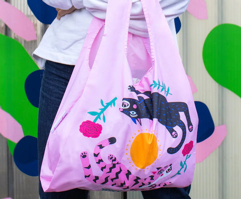 Reusable shopping bag made from recycled materials. Featuring artwork by Amy Hastings.