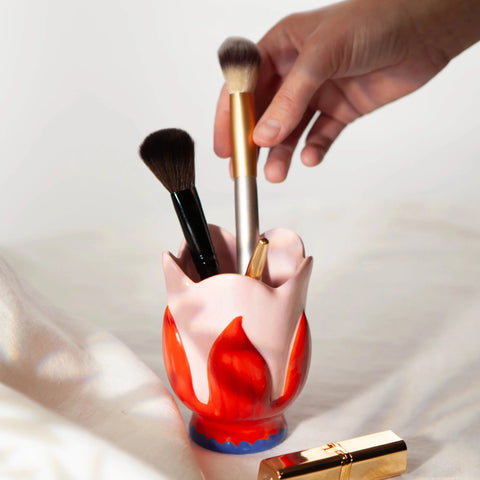 This versatile ceramic pot in the shape of a flower bud is perfect for plants, pens and other essentials. Bring versatility and style to your space with the Bloom Pot - it's floral design will add a vibrant touch to any corner of your home.