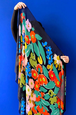 Made from super soft silk-modal blend fabric. A lovely semi-sheer and lightweight fabric printed in beautiful colour!