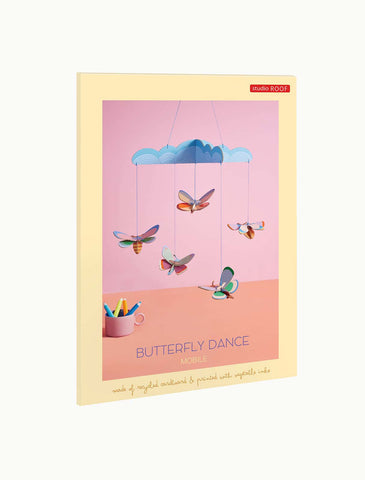 A gorgeous mobile that brings to mind the beautiful dance-like flight of butterflies. This 3D object comes flatpacked ready to build, and is made of recycled cardboard printed with vegetable inks.