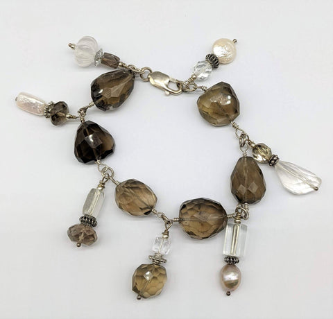 Smoky Quartz Pearl & Crystal Charm Bracelet